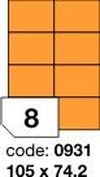 Oranžové fluo etikety Rayfilm R0133.0931A, 105x74 mm, 100 listů A4, 800 etiket