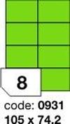 Zelené fluo etikety Rayfilm R0130.0931A, 105x74,2 mm, 100 listů A4, 800 etiket
